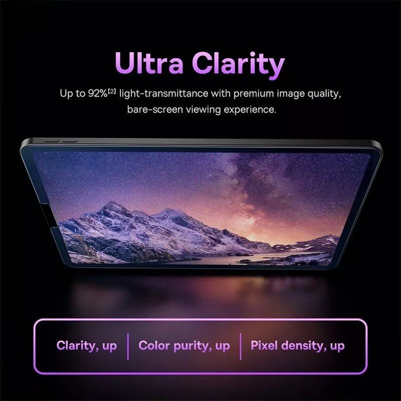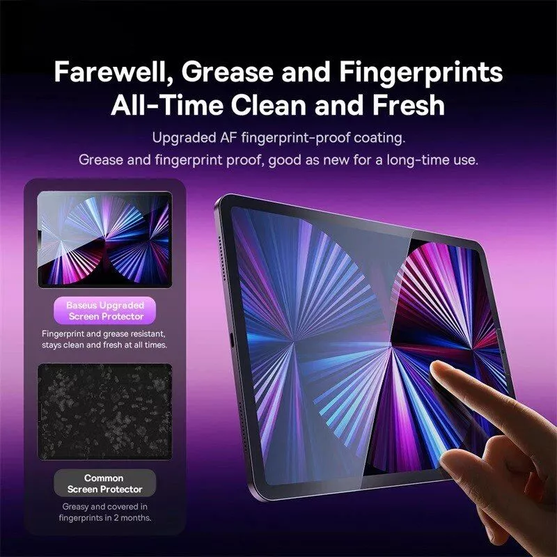 Our screen protector is made from high-quality tempered glass that is just 0.3mm thick, ensuring your iPad’s screen remains crystal clear and fully responsive. The HD clarity and light transmittance of our screen protector maintain the iPad’s stunning viewing quality and experience. Plus, it is fingerprint-resistant, so you can say goodbye to smudges and fingerprints. And with its scratch-resistant properties, your iPad’s screen will be protected from everyday wear and tear.