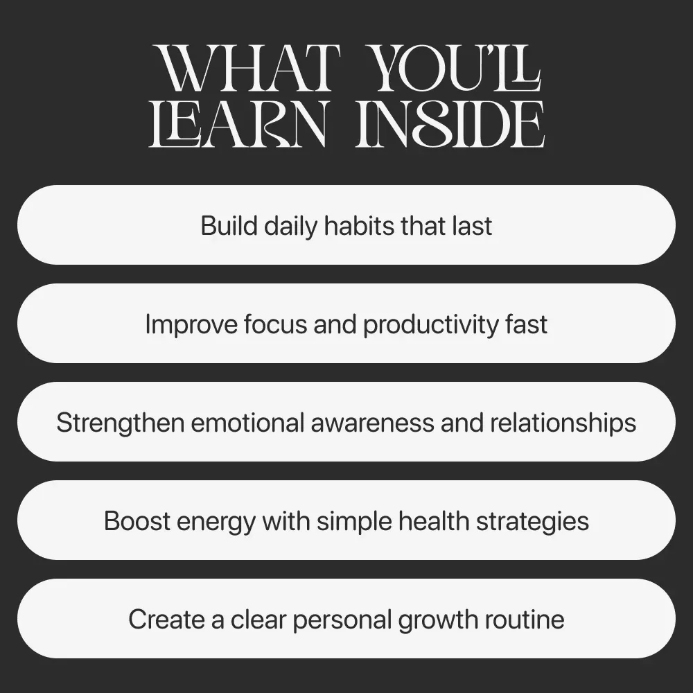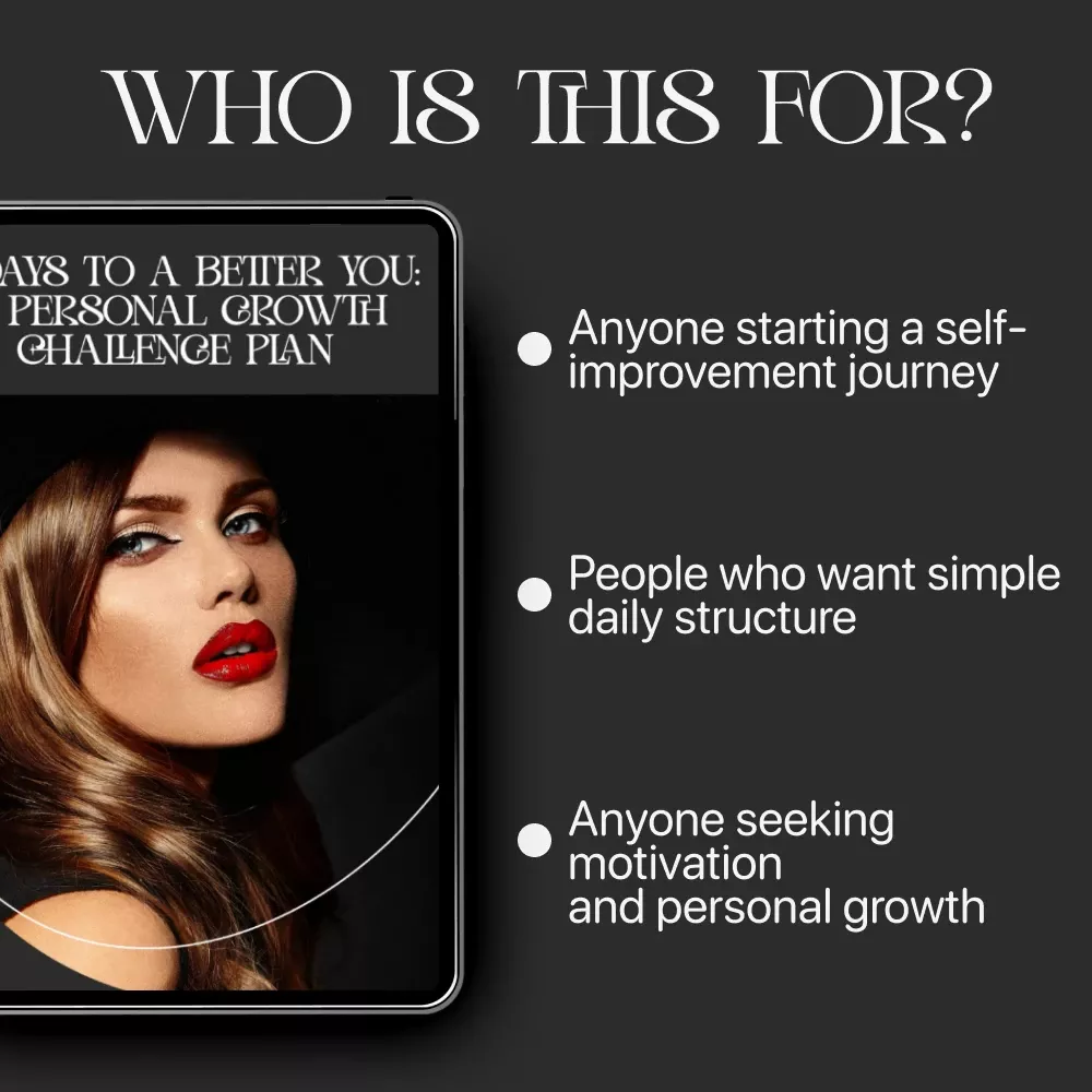 This ebook is perfect for anyone who feels stuck, unmotivated, overwhelmed, or unsure where to start with self-improvement. Whether you’re a busy professional, student, entrepreneur, or simply someone looking for structured self-growth, this 30 day personal growth challenge plan gives you clear direction and daily guidance.