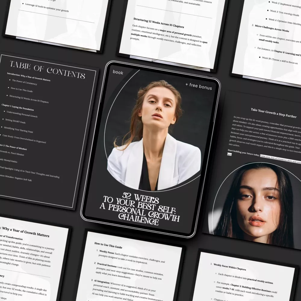 Imagine looking back one year from today and realizing how much you’ve grown — mentally, physically, emotionally, and financially. 52 Weeks to Your Best Self: A Personal Growth Challenge isn’t just an ebook, it’s a complete transformation roadmap. This powerful 52 week personal development challenge walks you through consistent, realistic self-growth without overwhelm. Whether you want better habits, stronger mindset, clearer goals, or simply more control over your time and life direction, this guide breaks everything into simple weekly actions you can actually stick to.