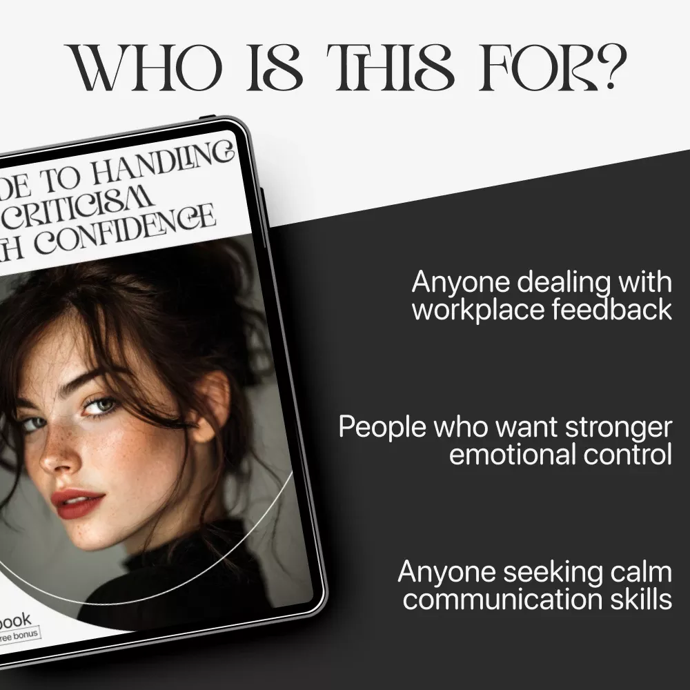 This ebook is for professionals, students, creators, entrepreneurs, leaders, and anyone who struggles with taking feedback too personally or wants to master how to handle criticism calmly. If you’ve ever replayed a comment in your head or wished you handled a situation better, this guide is for you.