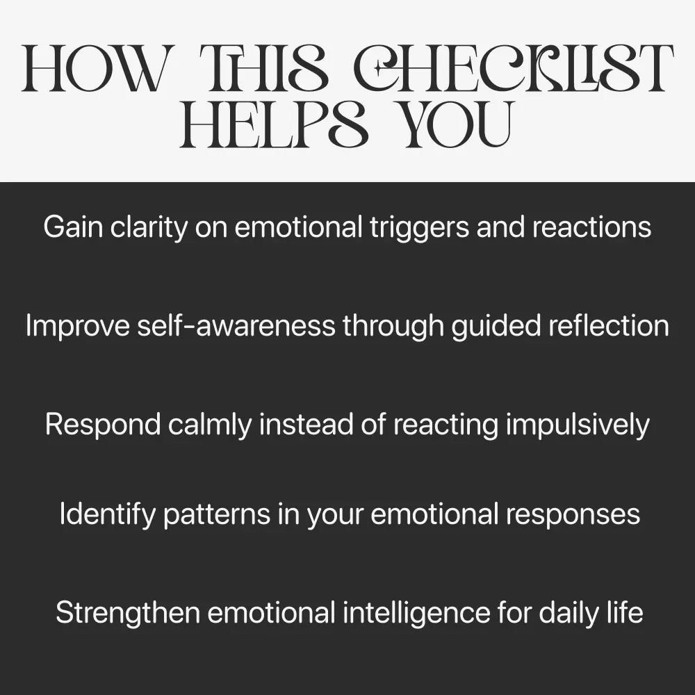 This checklist is perfect for anyone on a self-growth journey – whether you’re just beginning your inner work or you’re already deep into self-reflection and personal development. It’s ideal for journaling lovers, therapy clients, coaches, psychology students, mindfulness practitioners, or anyone who wants to understand their emotional patterns better.