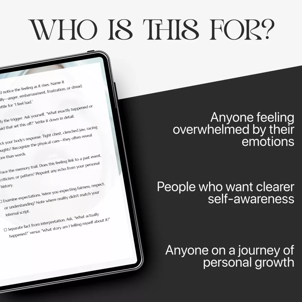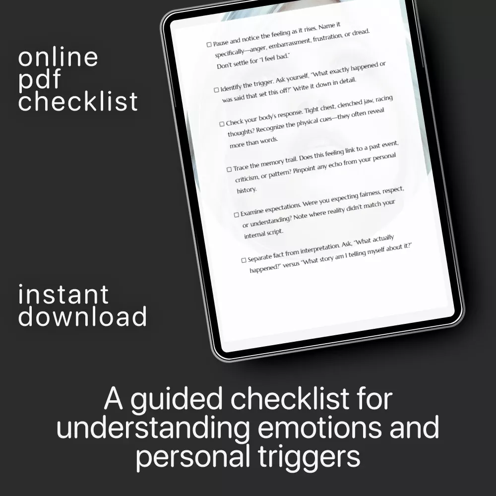 Ever feel overwhelmed by your emotions and unsure where they’re really coming from? A Step-by-Step Self-Discovery Checklist is your gentle roadmap to understanding your inner world with clarity and compassion. This downloadable guide walks you through the exact process of pausing, naming, and unpacking your emotional reactions so you can respond instead of react. Designed for real life, it’s simple, practical, and powerful enough to use in the middle of a tough moment or during quiet self-reflection.