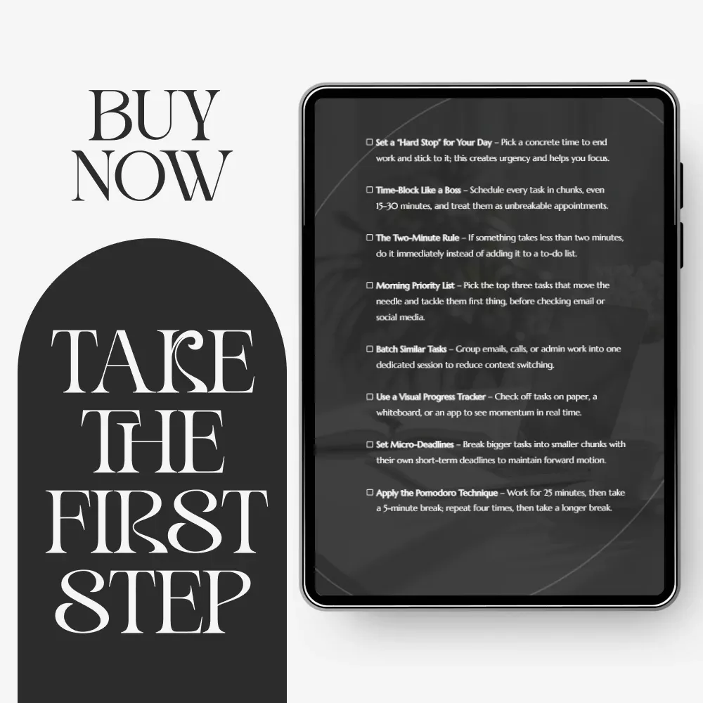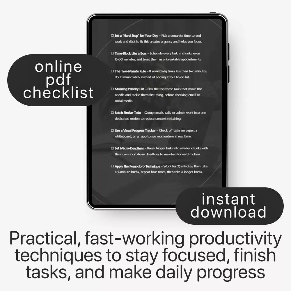 Ready to finally get stuff done—without the overwhelm? This powerful digital checklist, Actionable Techniques to Get Stuff Done, gives you simple, proven strategies to boost focus, stay organized, and follow through on what matters most. Designed for busy professionals, entrepreneurs, students, and anyone craving better workflow, this instantly downloadable guide helps you take control of your day using practical, science-backed self productivity techniques you can apply immediately.