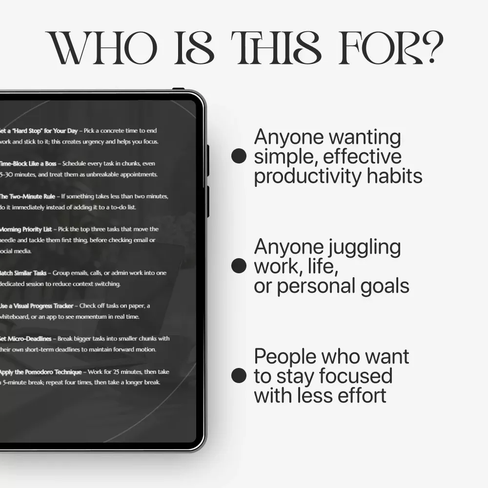 - Beginner-friendly and instantly usable—no fluff, just effective habits that stick.
