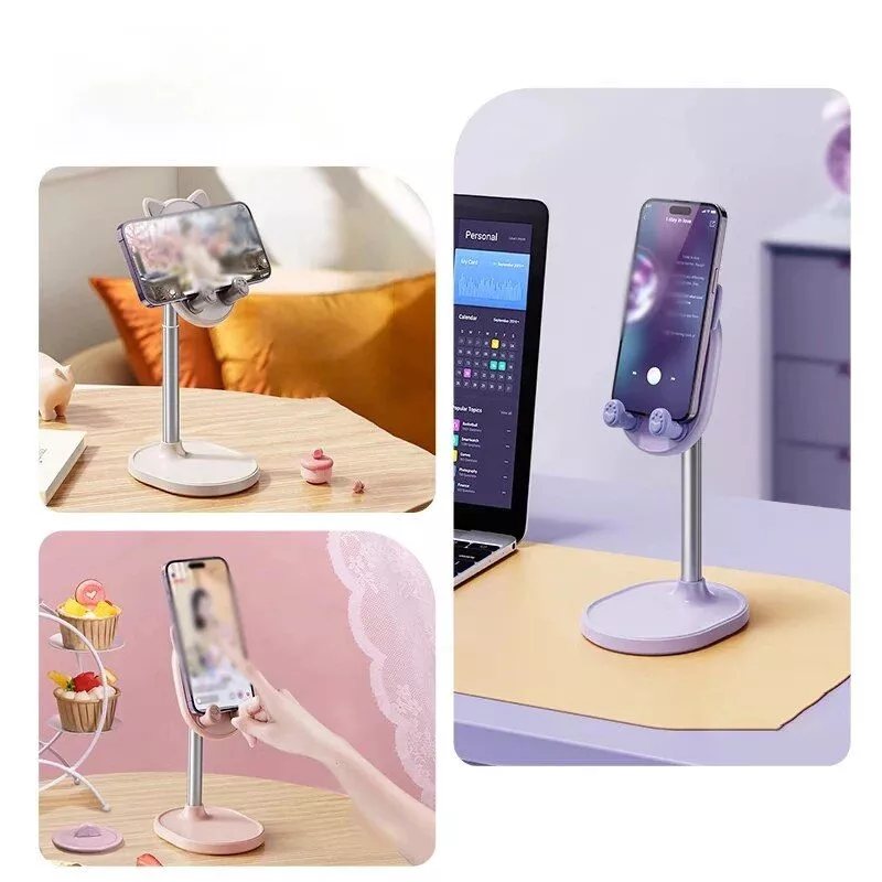 Introducing the ultimate accessory for your digital life – our Adjustable Phone & Tablet Desktop Holder! Designed to bring both charm and functionality to your workspace or bedside table, this cute and versatile stand is your steadfast companion for hands-free video calls, live streaming, or simply binge-watching your favorite shows. Its telescopic adjustment and universal compatibility make it a perfect fit for any gadget enthusiast looking for a blend of style and convenience.