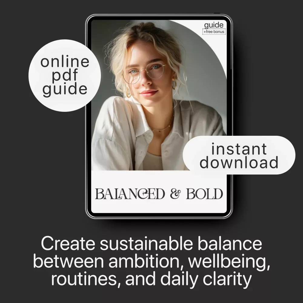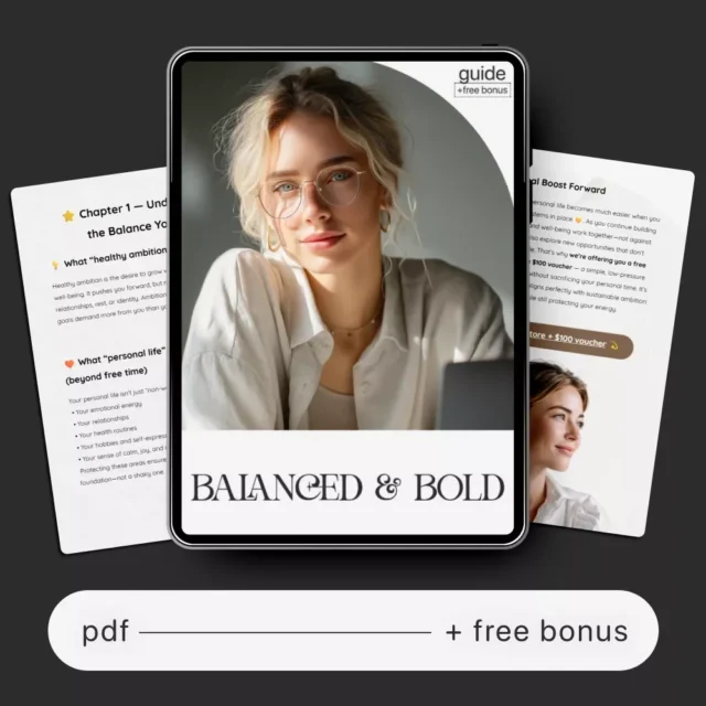 Balanced & Bold is your go-to digital guide for creating a life where ambition and personal wellbeing can finally coexist. If you’ve ever felt torn between chasing big goals and nurturing the parts of your life that matter most, this beautifully structured resource shows you how to do both—without guilt, burnout, or constant overwhelm. This downloadable guide is designed for high achievers, creatives, entrepreneurs, and anyone ready to build a more intentional rhythm between work and life.