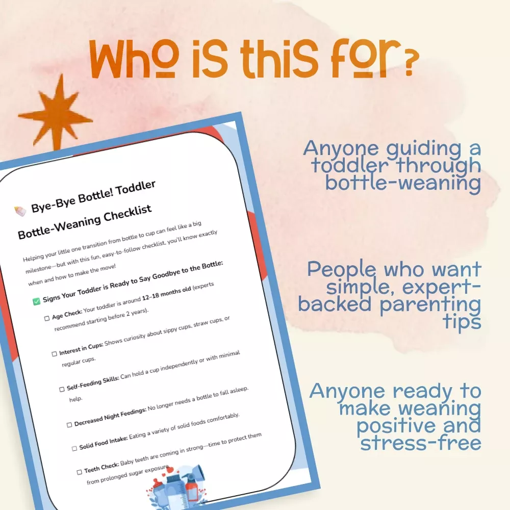 Make bottle-weaning a positive experience for your toddler—and a stress-free one for you. Download your copy of the Bye-Bye Bottle! Toddler Bottle-Weaning Checklist today and start guiding your little one toward this exciting new chapter with confidence and joy!