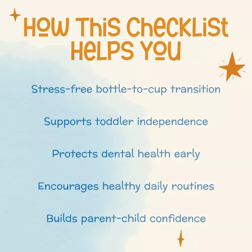 • Signs Your Toddler is Ready: Clear readiness indicators like age, interest in cups, and feeding skills.