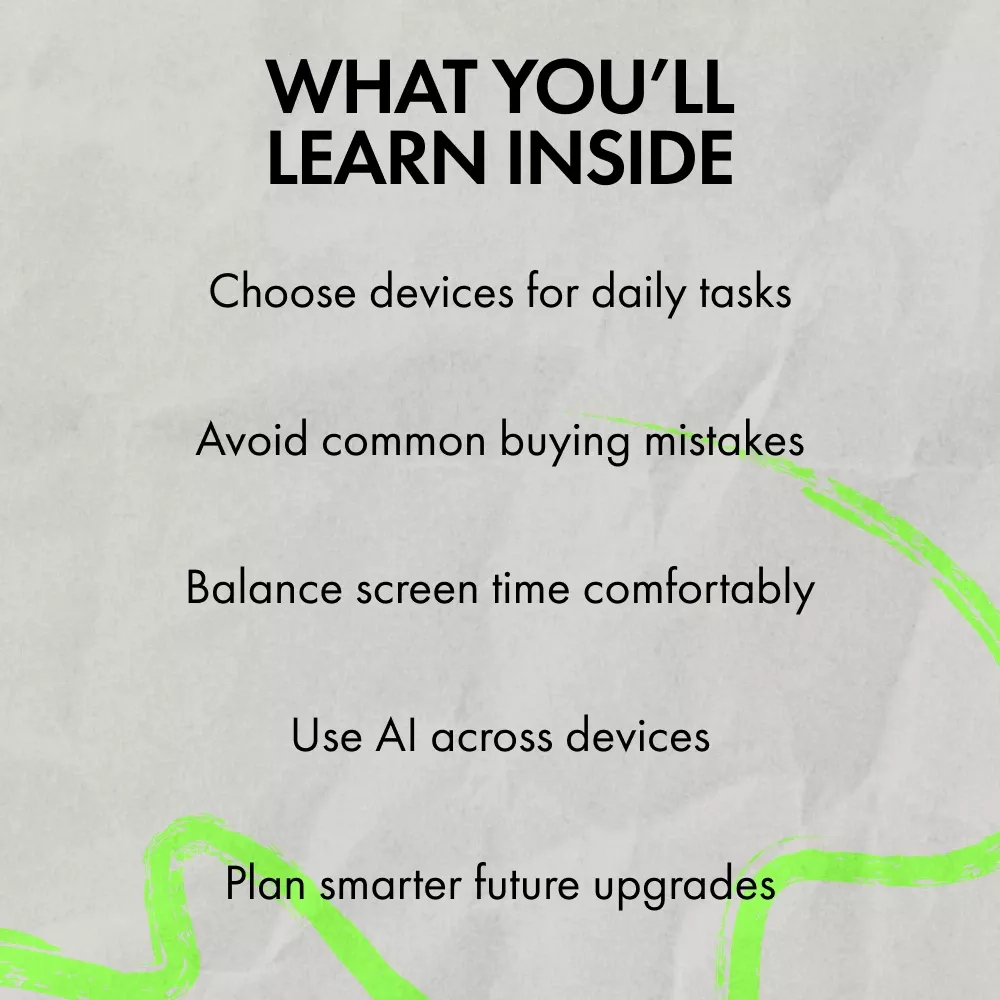 Unlike generic tech comparisons, this guide focuses on how you actually live. It blends practical decision-making with real-life examples and modern AI insights, helping you build a balanced digital setup instead of just buying another gadget.