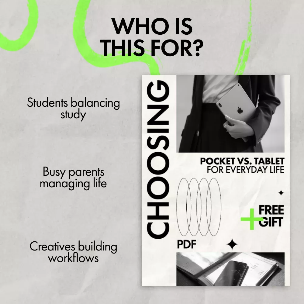 Choosing the right device shouldn’t feel overwhelming, yet many people end up with technology that doesn’t truly fit their daily routines. Choosing Pocket vs. Tablet for Everyday Life is a clear, practical ebook designed to help you confidently decide what works best for you. Whether you’re comparing a smartphone, a tablet, or how both fit into your lifestyle, this guide breaks down the real-world differences in a way that’s easy to understand and immediately useful.