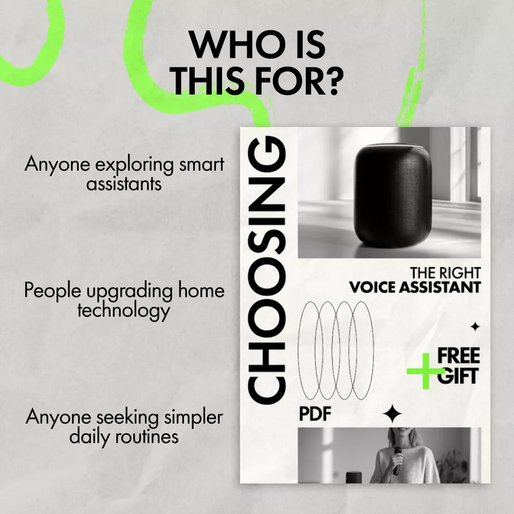 This ebook is ideal for beginners, tech-curious users, families, professionals, and anyone considering smart technology for daily life. If you want an honest, easy-to-follow voice assistant comparison without marketing hype, this guide was written for you.