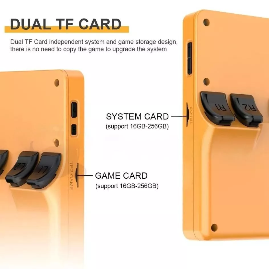 - Dual TF Card System for independent game and system storage, ensuring easy upgrades without game loss.
