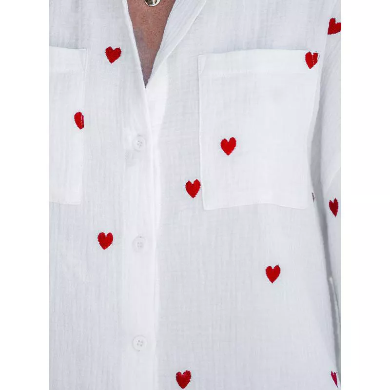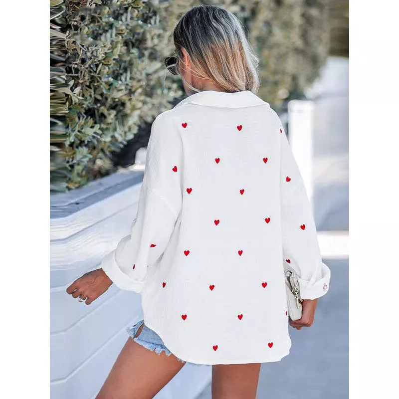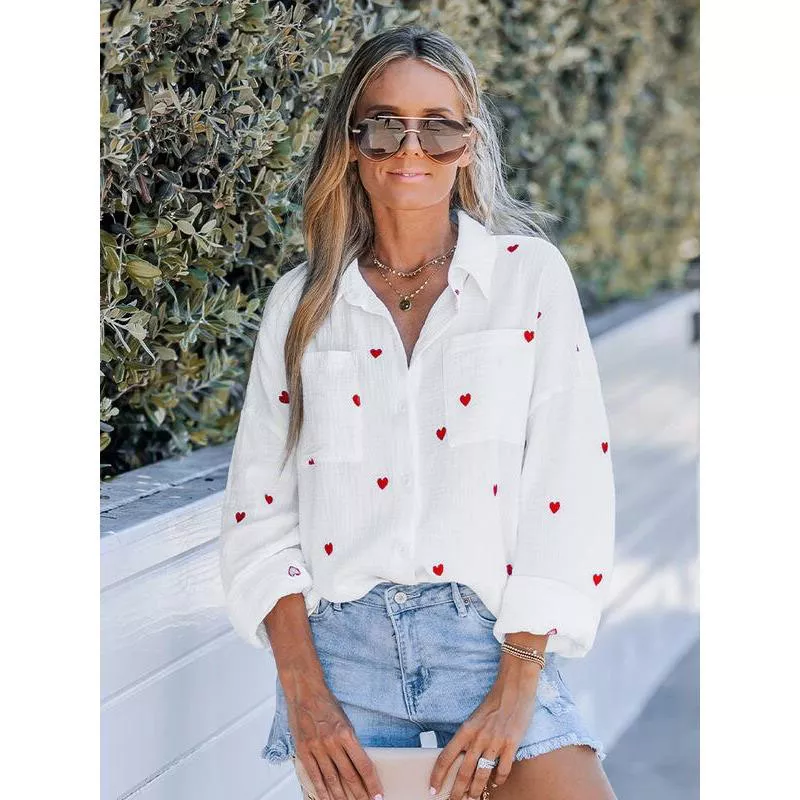 Step into the season with style and comfort with our Cotton Embroidered Heart Long Sleeve Blouse. Designed for the woman who cherishes both comfort and chic, this casual loose-fit top blends classic elegance with a playful twist. Its heart embroidery adds a unique touch to your everyday look, making it perfect for a variety of occasions – from work to weekend outings.