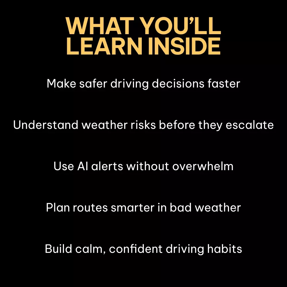 Unlike generic driving safety ebooks, this resource focuses on real decision-making—not just rules. It bridges human behavior with modern AI tools, helping you understand how AI alerts for weather-related driving fit into everyday life without overwhelming you with tech jargon.