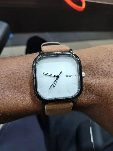 A few weeks ago, I picked up this watch with a square dial and a leather strap, and honestly, I've been pleasantly surprised by how much I like it. It's got this unique look that's a bit different from your usual watches, thanks to its square face. It’s kind of refreshing and has turned into a nice conversation starter more than once.The size is just right too – the dial isn't too big or small on my wrist, which I appreciate because I've struggled with finding the right fit before. And the clarity? Spot on. Even in direct sunlight, I can tell the time without squinting, which says a lot about the thought put into the glass covering.As for keeping time, it hasn’t skipped a beat. I was a bit wary at first about how accurate a quartz movement would be, but it's been dead on, every time I check it against my phone. The leather strap deserves a shoutout too. It felt a bit stiff right out of the box, but after a couple of days, it molded to my wrist perfectly. It's comfy, looks great, and hasn’t shown any signs of wear yet.It's been a great accessory for both my work outfits and my more casual looks. It doesn’t scream for attention but definitely adds a polished touch. Plus, the durability so far has been a relief. I’m not exactly gentle with my watches, so the fact that it still looks as good as the day I got it speaks volumes.All in all, this watch has been a solid choice. It balances style and functionality in a way that works for pretty much any day of the week. If you’re on the fence about getting it, I’d say go for it. It’s a subtle yet stylish piece that feels like it punches above its weight, especially for the price.