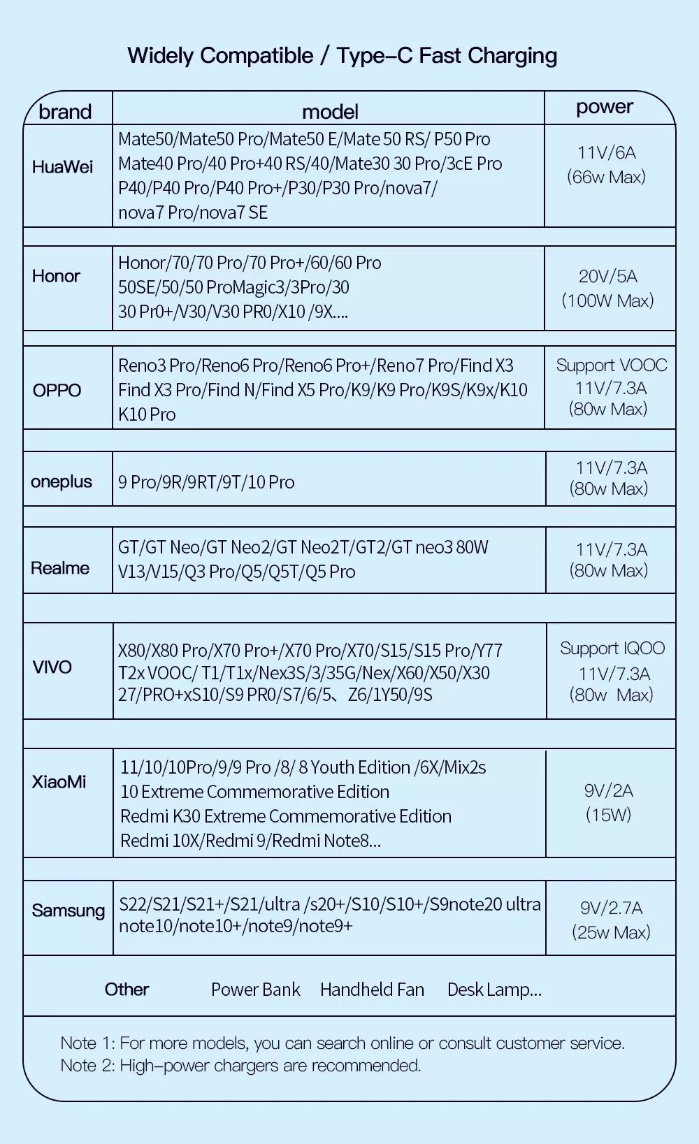 Fast ChargingFor OPPO / Oneplus / Realme Series Mobile Phone Which Support VOOCFast Charging Protocol.For VIVO Series Mobile Phone Which Support IQOO Fast Charging Protocol.