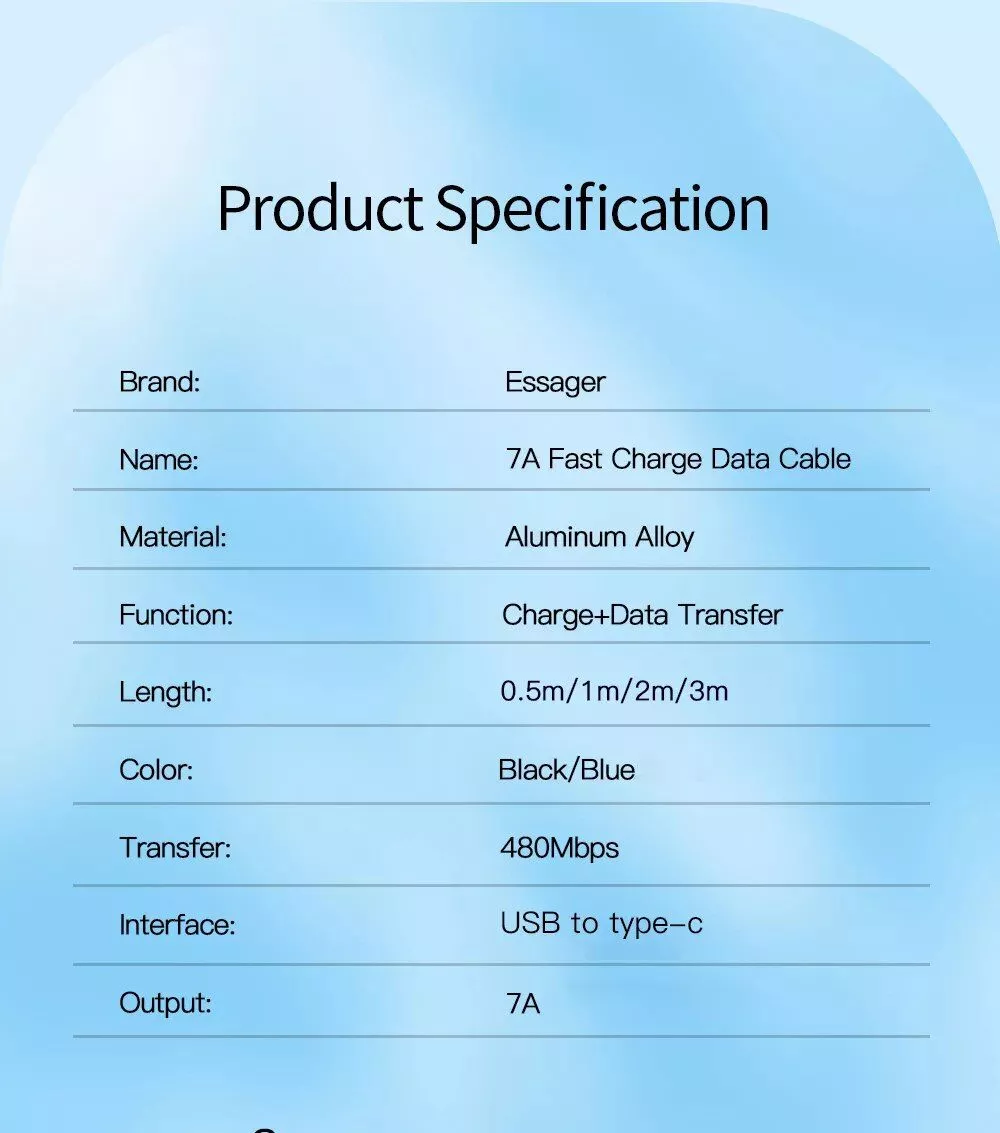 ESSAGER 7A data cable matching original charger can achieve original charging efficiency