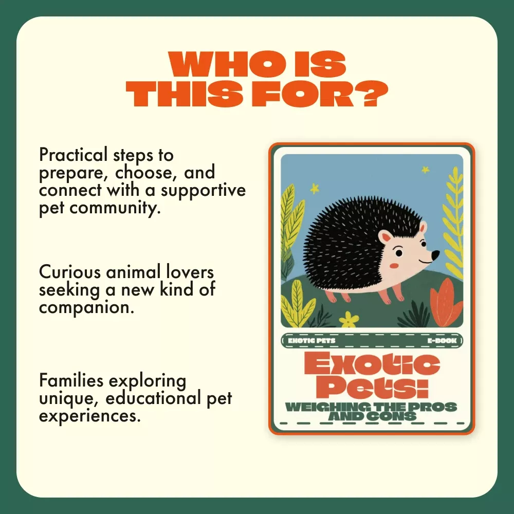 This eBook is ideal for aspiring exotic pet owners, educators, animal enthusiasts, and families exploring nontraditional pets. It’s a practical yet inspiring guide that balances passion with responsibility.