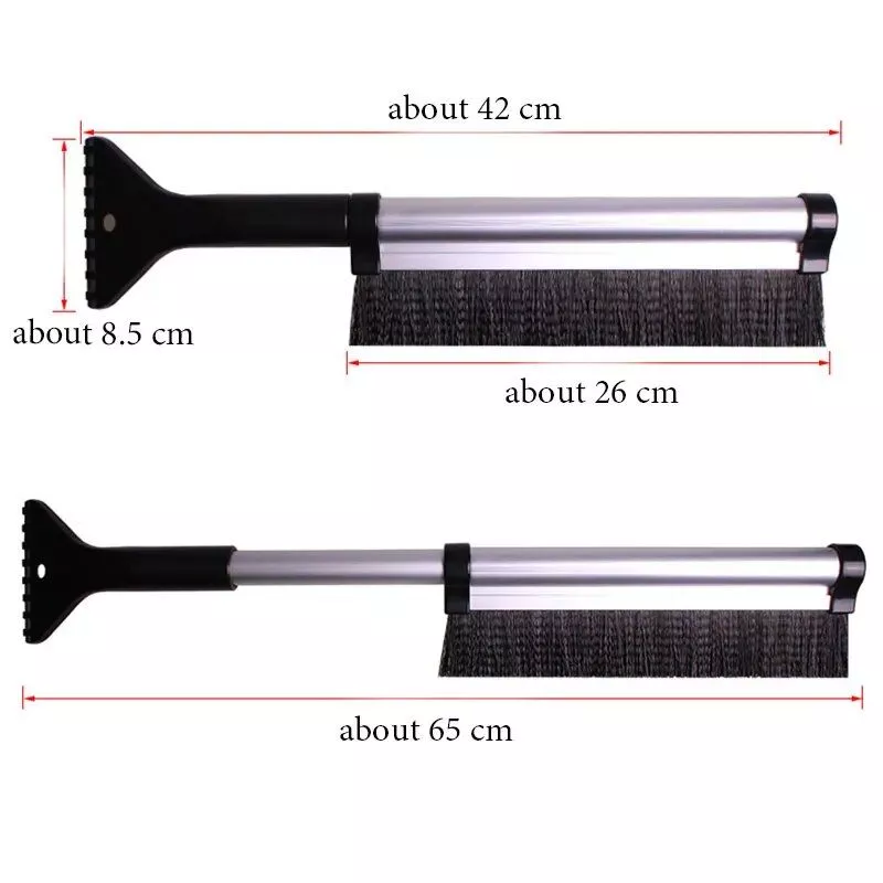 What sets our ice scraper apart from others is its versatility. Not only does it quickly remove frost and snow, but its extendable design ensures it’s suitable for all vehicle types. Moreover, the snow guide groove ensures no residue is left behind, leaving your windshield squeaky clean. Additionally, its compact design means it can easily fit in your car’s storage compartments or be carried in a bag.