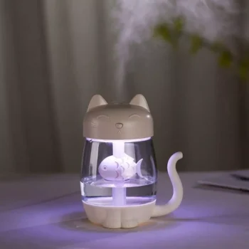 3-in-1 Cat & Fish Ultrasonic LED Humidifier – USB Aroma Diffuser with Timer