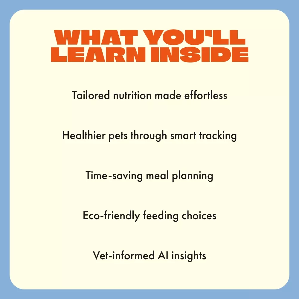 • Comprehensive yet beginner-friendly: Learn step-by-step how AI analyzes your pet’s data to craft the ideal feeding plan.