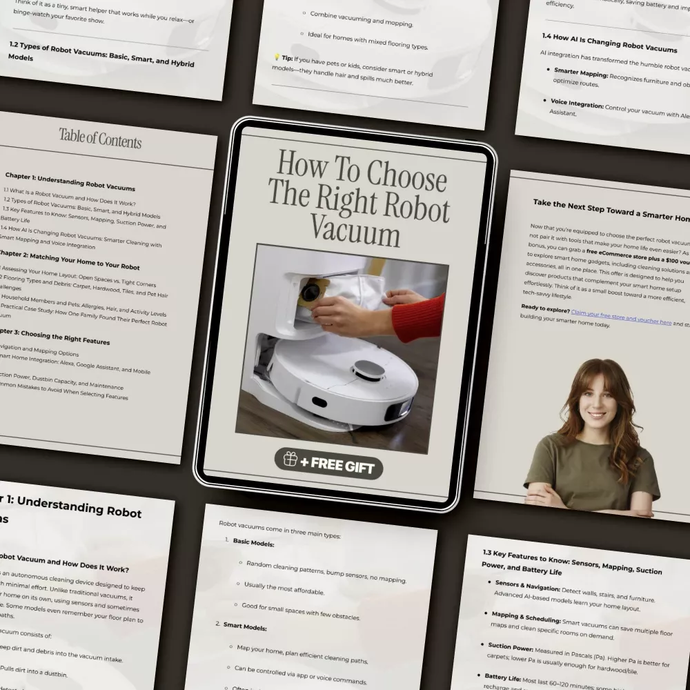 Don’t waste time scrolling through endless product listings—get the knowledge you need in one easy-to-read guide. Download How to Choose the Right Robot Vacuum today and start your journey toward a cleaner, smarter home.