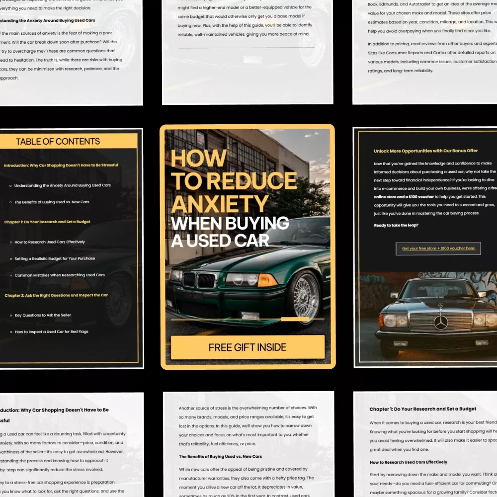 Buying a used car shouldn’t leave you feeling overwhelmed, second-guessing every decision, or worried about making an expensive mistake. How to Reduce Anxiety When Buying a Used Car is a practical, easy-to-follow digital guide designed to help you feel informed, prepared, and confident from the very first search to signing the final paperwork. Whether you’re a first-time buyer or someone who’s had a stressful car-buying experience before, this guide walks you through proven strategies for reducing anxiety when buying used cars and turning a stressful process into a manageable one.