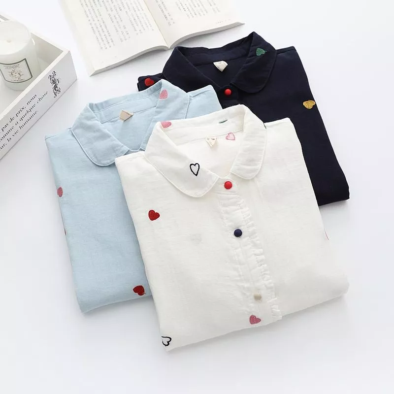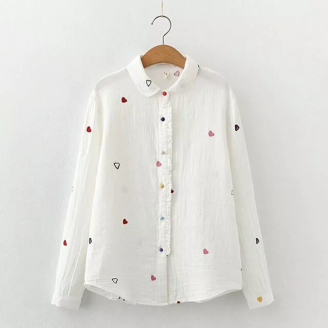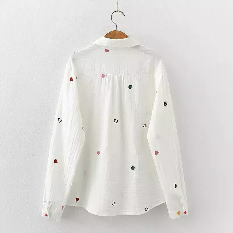 Indulge in the perfect blend of fashion and comfort with our Love Heart Printed Women Shirt. Crafted from premium quality cotton fabric, this blouse exudes elegance and ensures a cozy feel all day long.