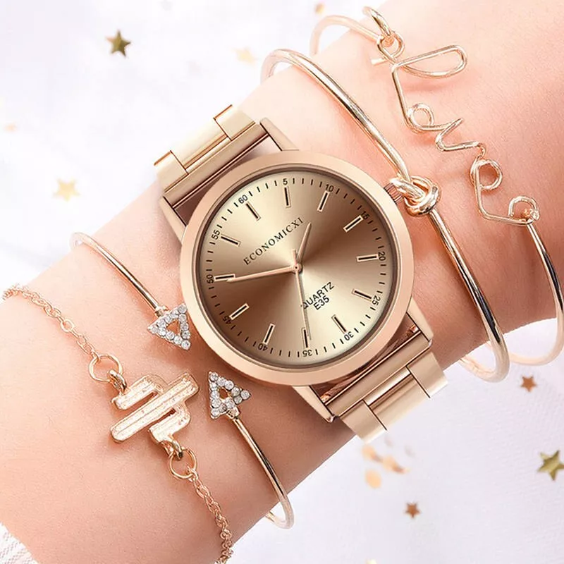 - Includes 1 Quartz Watch and 4 Gemstone Bracelets for versatile styling.