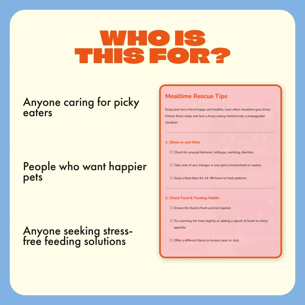 I appreciate how action-focused this digital download is—it’s more than just tips but an actual rescue plan. Already noticing improvements in my pet's appetite after following these steps.