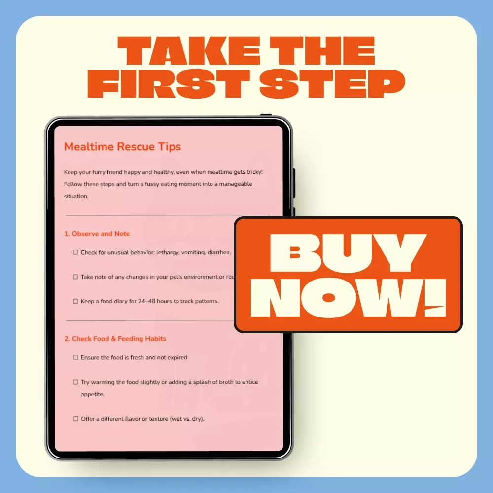 Don’t wait until mealtime becomes a struggle. Download the Mealtime Rescue Tips checklist today and get clear, caring guidance on what to do when pet won’t eat. Bring calm back to your feeding routine and feel confident knowing exactly how to help your pet thrive. Click “Add to Cart” now to start your mealtime rescue!