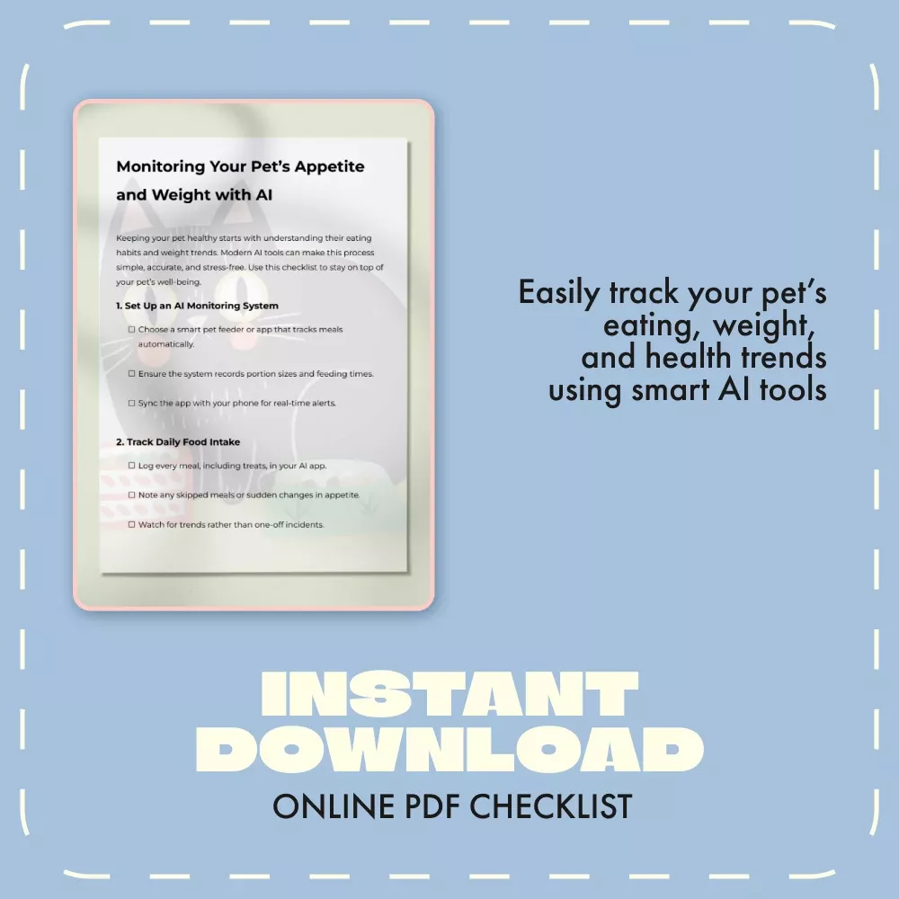 Start building a healthier, happier routine for your pet today. Download the Monitoring Your Pet’s Appetite and Weight with AI checklist now and let intelligent insights guide your next step in pet care!