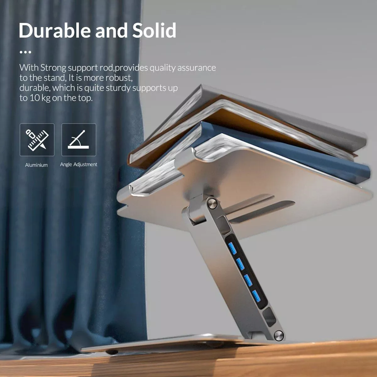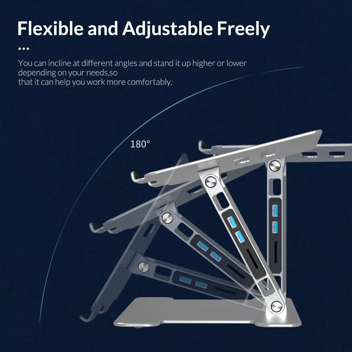 Unlike traditional stands, our product offers more than just support. It’s a hub for your digital life, expanding your device’s capabilities with additional USB ports and an SD card slot. The ergonomic design ensures comfort and productivity, while the durable construction guarantees long-term use. With its sleek design and practical features, it’s not just a stand but an enhancement to your work lifestyle.