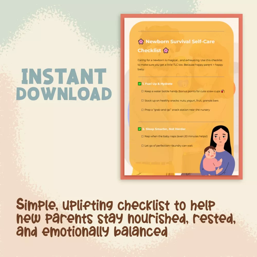 Welcoming a newborn into your life is magical, but it’s also one of the most exhausting seasons you’ll ever face. Between feedings, diaper changes, and sleepless nights, it’s easy to forget about your own needs. That’s where the Newborn Survival Self-Care Checklist comes in. This beautifully designed, easy-to-follow digital download helps new parents stay nourished, rested, and supported during those early days at home. Think of it as your go-to guide for little reminders that make a big difference. Because when you care for yourself, you care better for your baby too.
