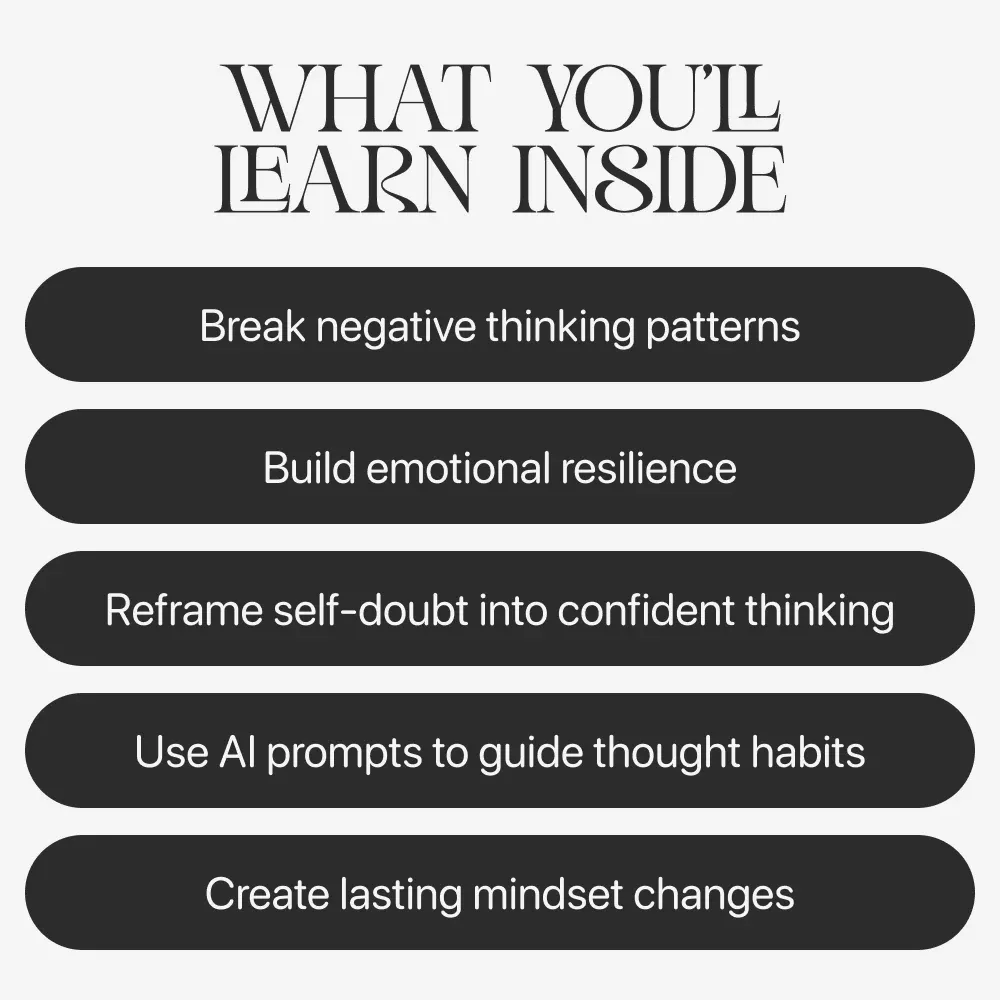 Unlike generic self-help resources, this guide blends psychology-based techniques with AI support. The section on Using AI as a Thinking Ally shows you how to use technology to strengthen your thinking without becoming emotionally dependent on it. It doesn’t just tell you what to think—it shows you how to retrain your thought process step by step.