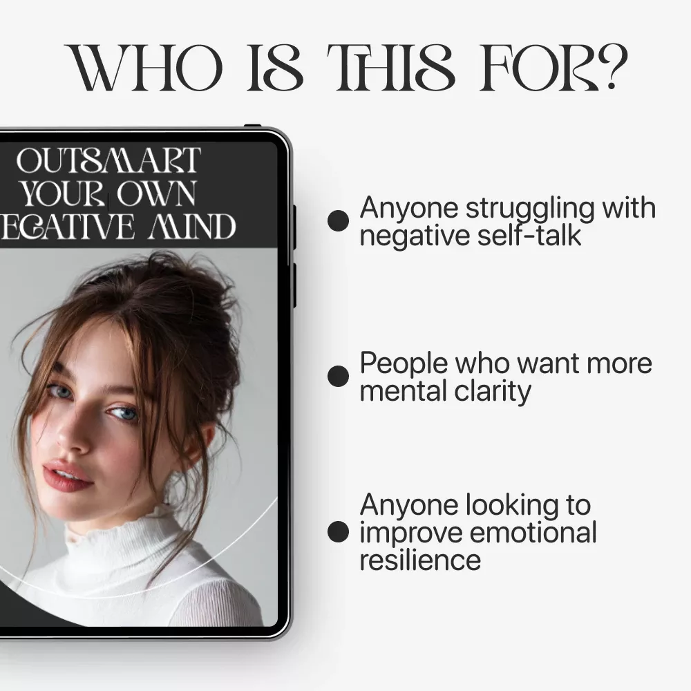 This guide is for anyone who feels stuck in overthinking, self-doubt, or negative self-talk. Whether you’re a student, professional, creative, or on a personal growth journey, Outsmart Your Own Negative Mind is designed for beginners and those who have already tried other mindset tools but want something more practical, structured, and modern.
