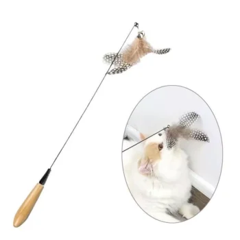 Deluxe Wood Handle Feather Cat Teaser – Springy Interactive Cat Toy