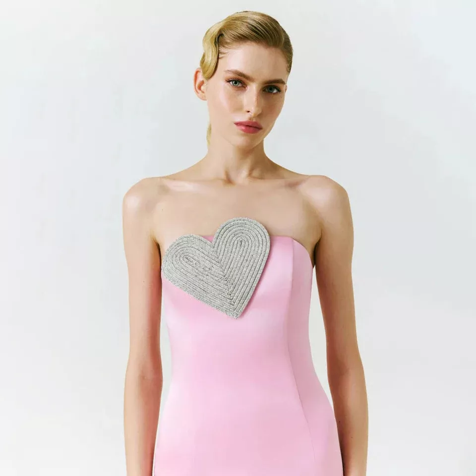 Unveil Your Elegance: Pink Satin Sequin Strapless Evening Dress