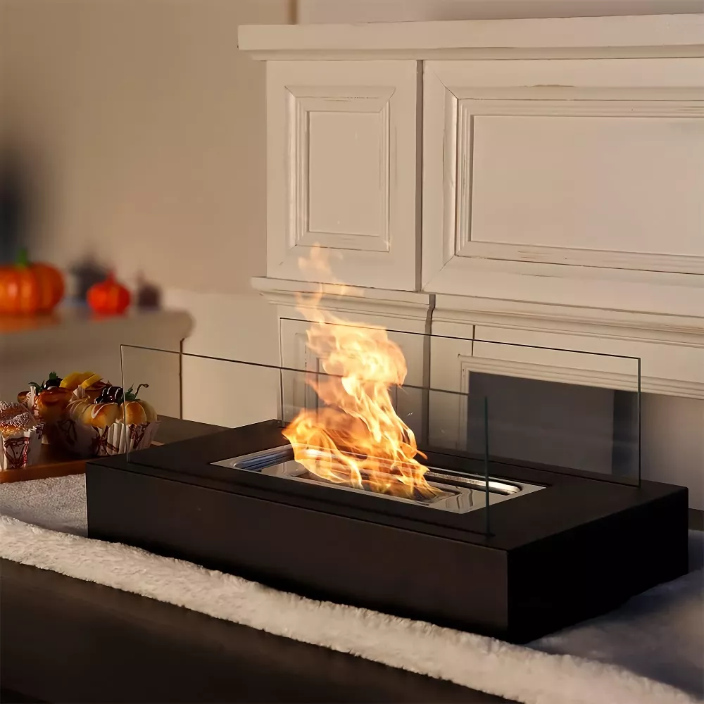 Our ethanol fireplace is distinguished by its ease of use and elegant design. It’s a rectangular bioethanol stove that’s both lightweight and durable, making it perfect for desktops or any room in your home. Its portability ensures you can also bring the warmth outdoors, ideal for gatherings, dinners, or simply relaxing under the stars.