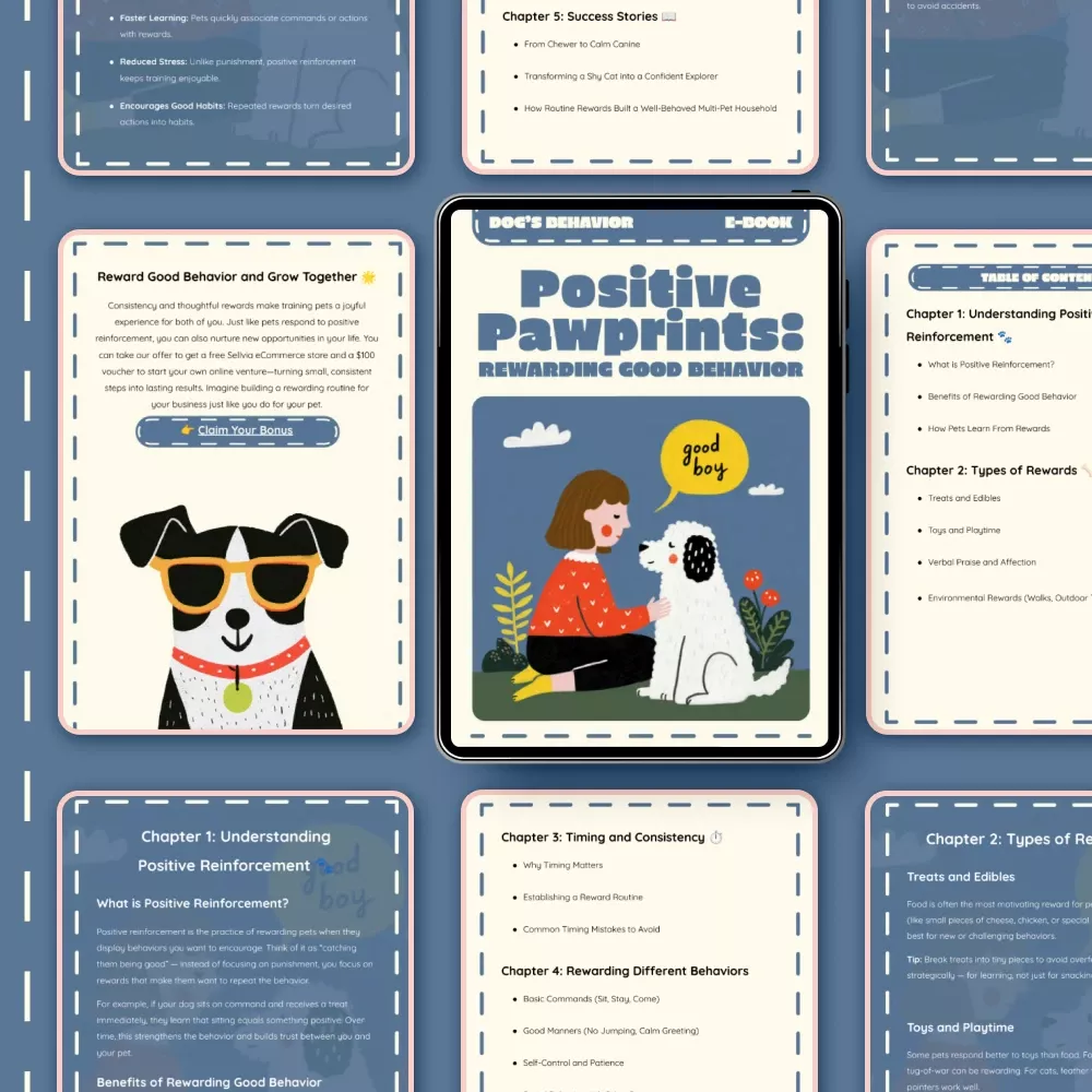 Bring out the best in your furry friend with Positive Pawprints: Rewarding Good Behavior — a beautifully designed digital guide that helps pet owners master the art of positive reinforcement. Whether you’re raising a curious kitten or a playful pup, this step-by-step eBook gives you everything you need to understand how pets learn, what motivates them, and how to reward them effectively. Download instantly and start creating a happier, calmer, and more obedient pet today!