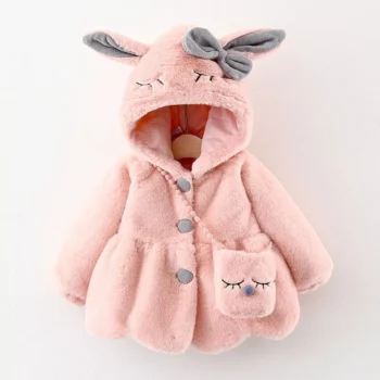 Plush Bunny Ear Hooded Jacket for Toddler Girls – Cozy Winter Princess Coat