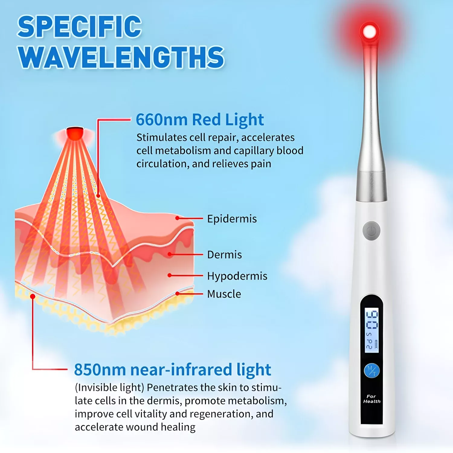 - Dual Wavelength Technology: Red (660nm) and near-infrared (850nm) light therapy for targeted depth penetration.