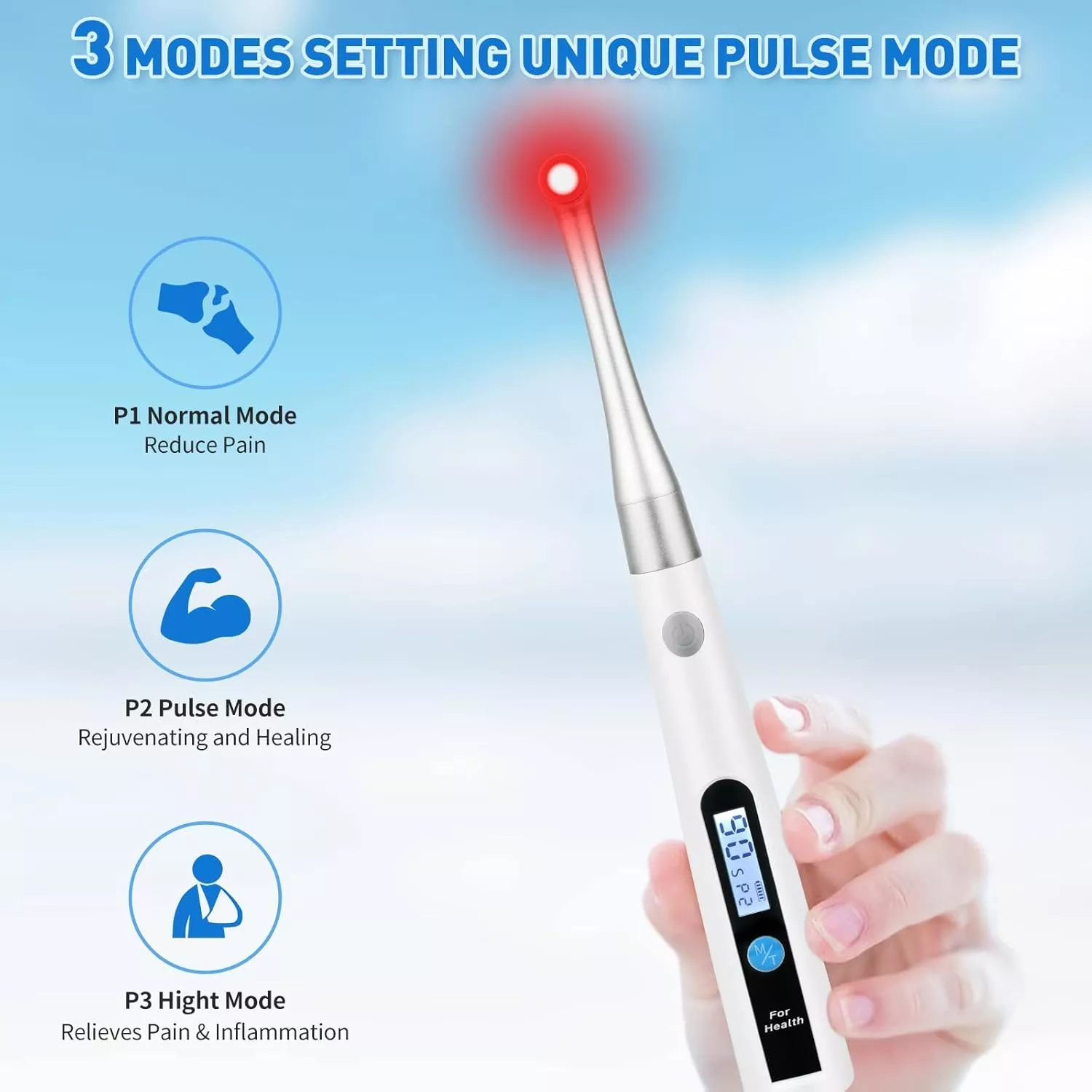 - Multiple Modes & Times: Choose from Normal, Pulse, and High modes with 30S, 60S, and 90S therapy time settings.