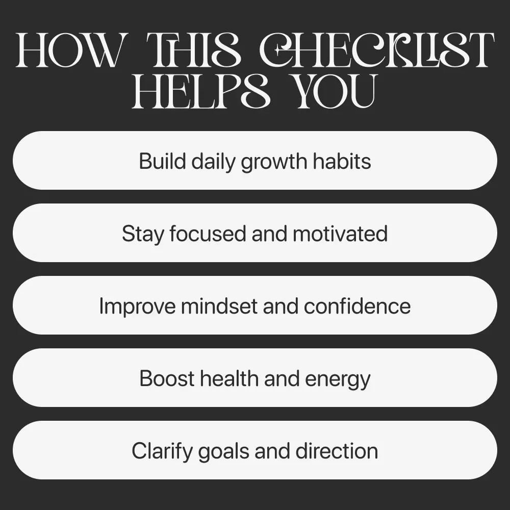 Ready to take control of your growth and start building better habits today? Download the Self-Improvement Checklist: Your Path to Personal Growth now and start turning your goals into daily, achievable actions. Your future self will thank you.