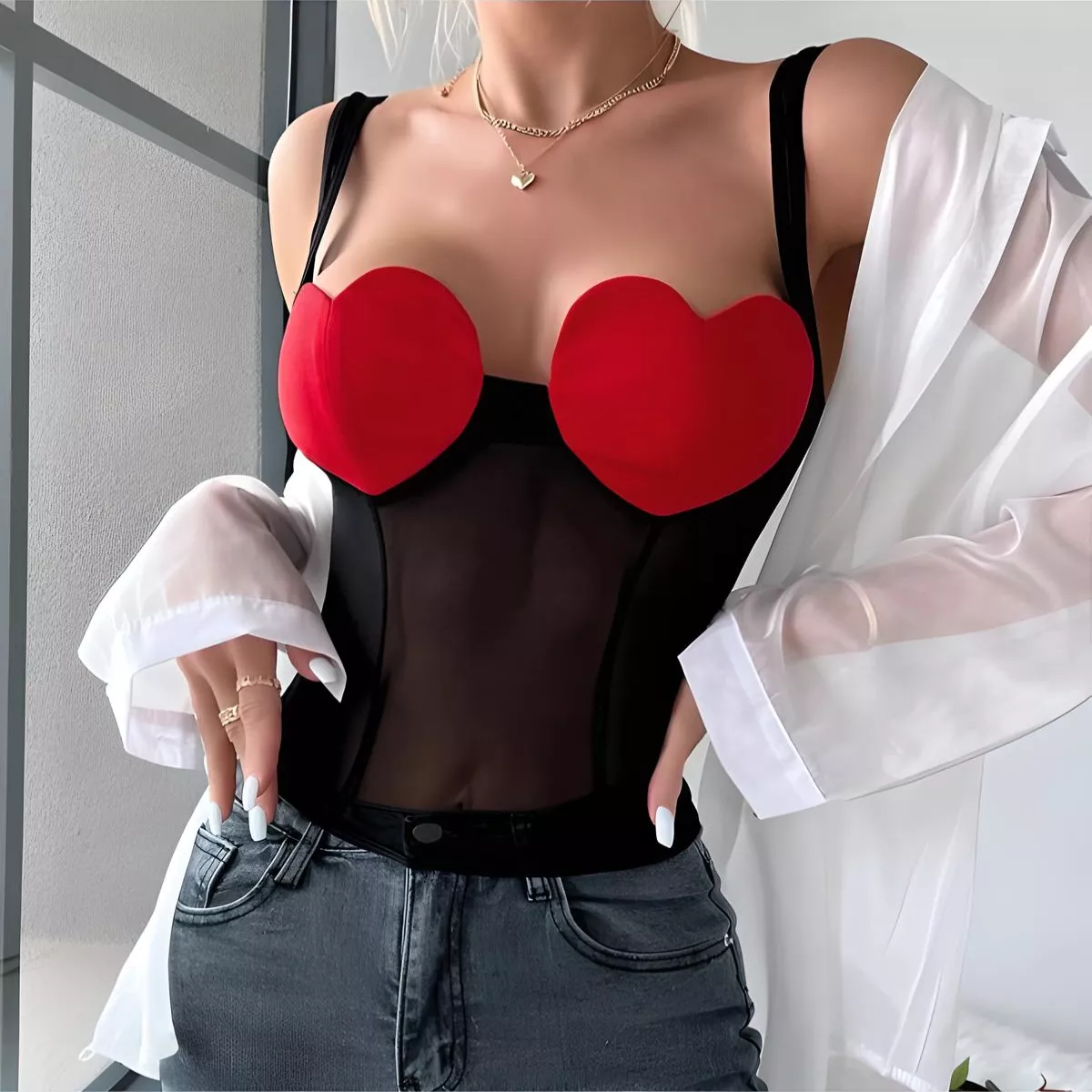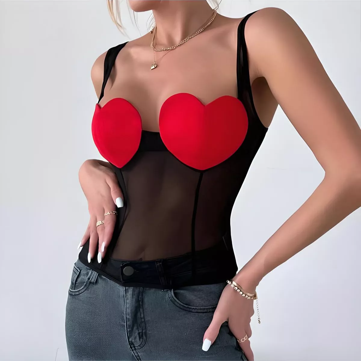 Introducing your new go-to piece for those sultry summer nights and high-energy parties: the Sexy Heart Mesh Tulle Tank Top. Blending the perfect mix of streetwise sass and flirty femininity, this bodycon camisole is a testament to modern style and comfort. Crafted with love and designed to turn heads, it’s the ultimate expression of your bold, confident self.