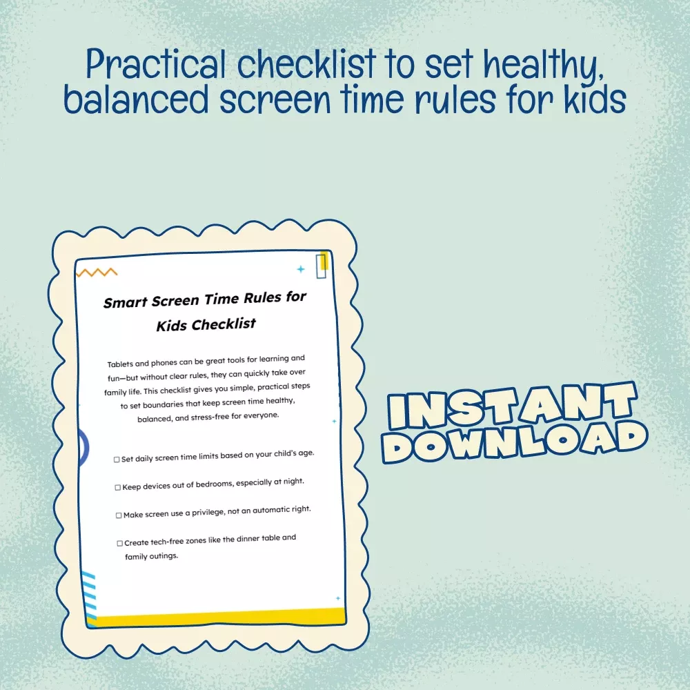 Bring more balance, structure, and calm into your home with the Smart Screen Time Rules for Kids Checklist. Download now and start creating screen time habits that truly support your child’s well-being—and your family’s peace of mind.