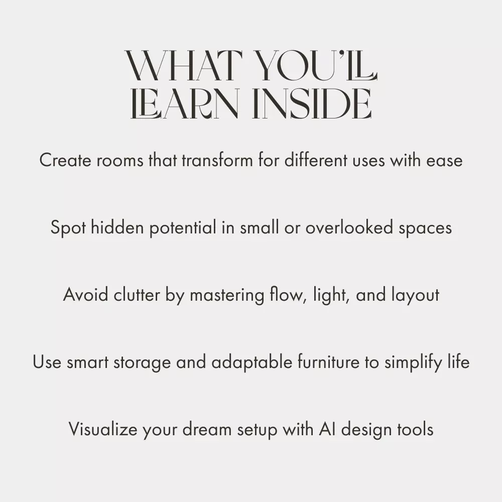 - Chapter 1: Rethinking Your Space — Understand multifunctional design, explore benefits beyond space-saving, and learn how to spot hidden potential in your room.