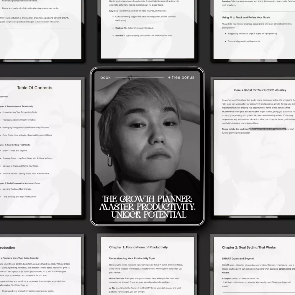 Unlike generic productivity ebooks, The Growth Planner goes deeper by combining science-backed strategies with modern AI-powered tools. It doesn’t just tell you what to do – it shows you how to do it using practical prompts, real scenarios, and simple language. You’re not just reading theories; you’re applying them daily using a structured planner for productivity and growth approach that fits your lifestyle.
