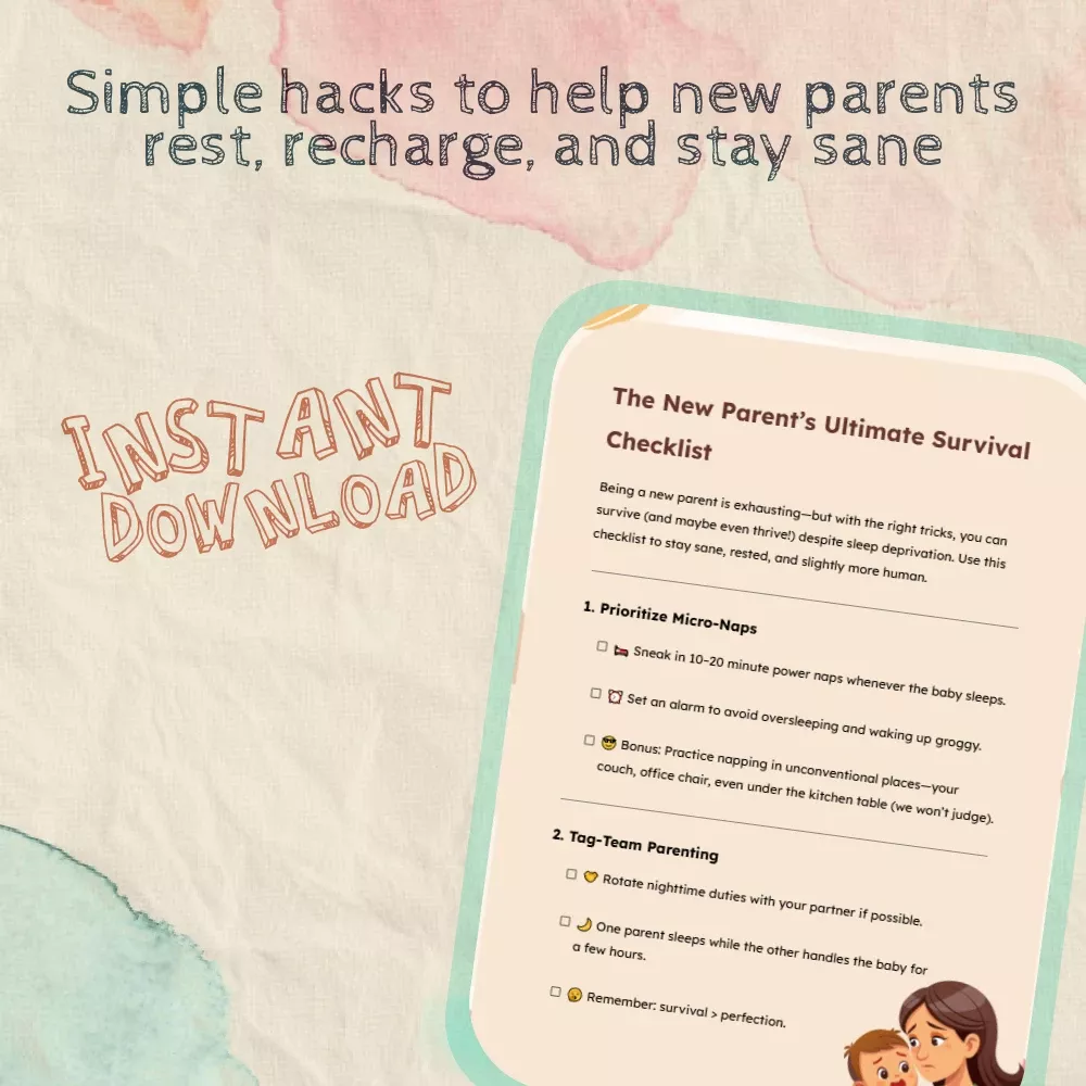 Whether you’re a first-time parent or adding another bundle of joy to your family, this digital checklist gives you realistic, guilt-free strategies to make each day a little easier. No fluff, no judgment — just simple, smart survival hacks that work.