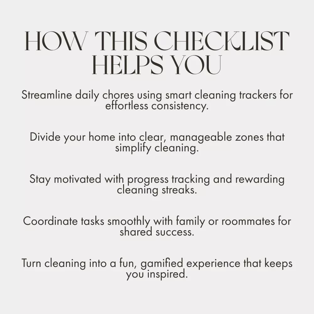 - Motivational: Designed to make cleaning feel satisfying, not stressful.
